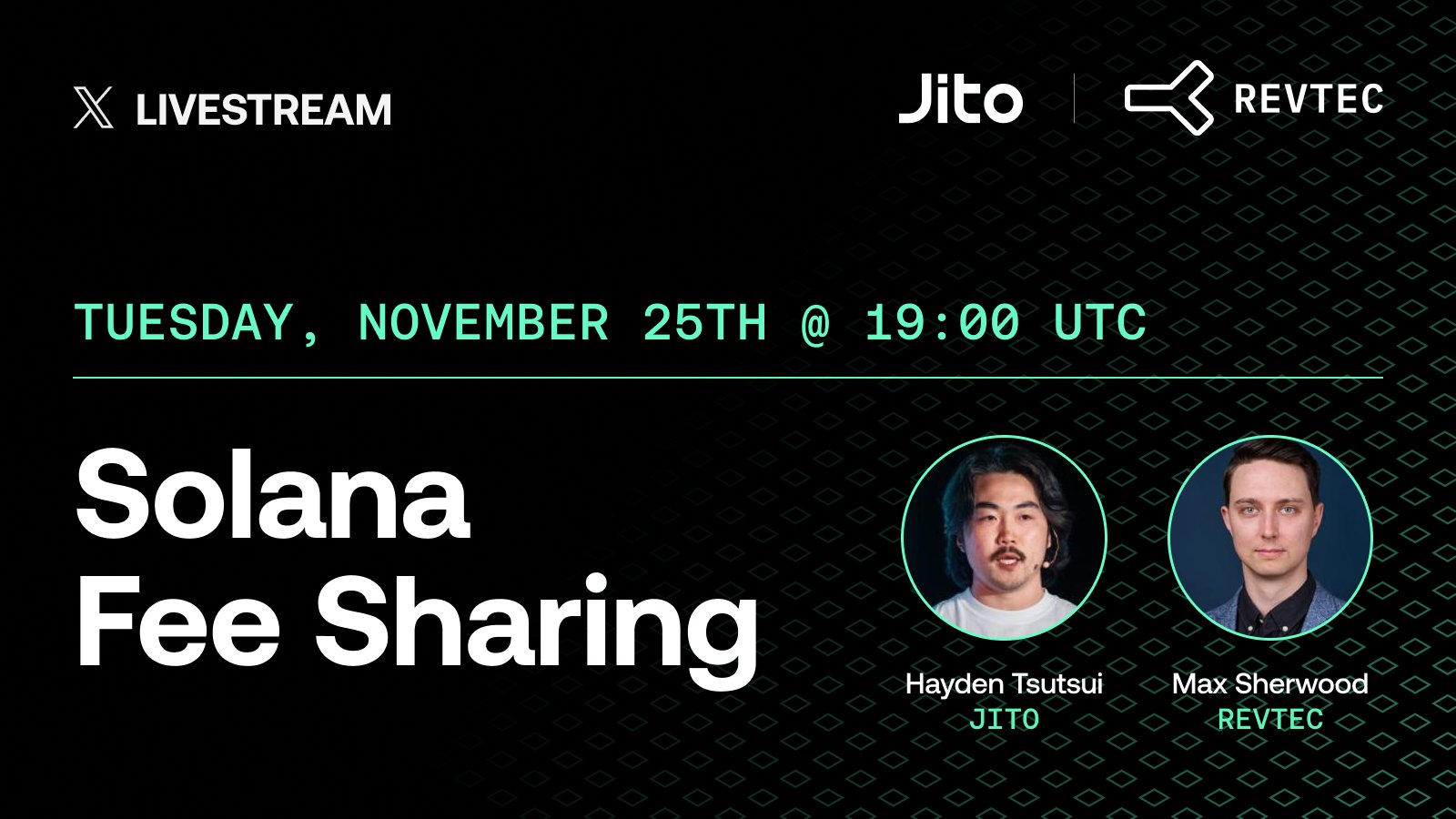 On November 25th, Jito Foundation’s Hayden Tsutsui hosted the founder of RevTec Max Sherwood on a special X livestream to discuss their latest TipRouter integration as well as their newly launched Solana validator.